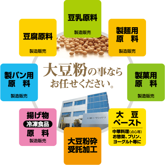 このホームページでは弊社が自信を持って生産、販売しております大豆粉製品をご紹介いたしますので、ぜひご利用ください。